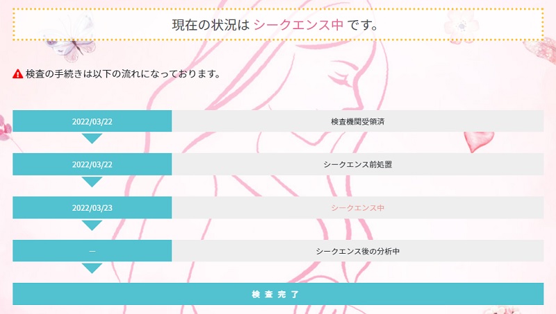 検査を受けた翌日にはヒロクリニックから検体を発送した旨のメールが届き、マイページにて検査状況が見れるようになります。